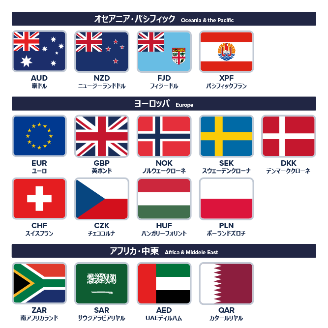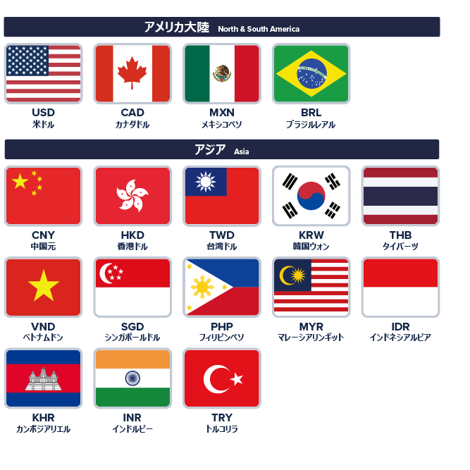 お取引通貨は以下の通り