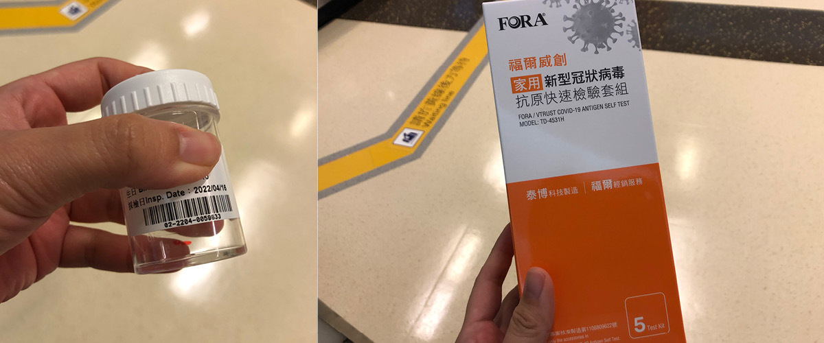 隔離中に使う検査キットと、空港内で行うPCR検査のキットの2種類を受け取ります。容器には、名前などの個人情報が書いてありますので、間違っていないか、念のため確認しましょう。